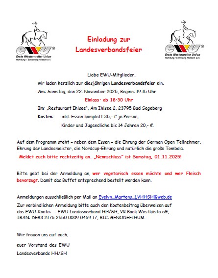 Bitte meldet Euch zeitnah per email bei Evelyn (Evelyn_Martens_LVHHSH@web.de) an, wenn Ihr teilnehmen